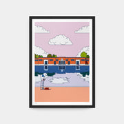 Ana Popescu's art print collection features her distinctive style, characterised by bold shapes, vibrant colours, and dynamic compositions inspired by sports, architecture, and nature. This art print, inspired by the 1930s Art Deco Brockwell Lido in Herne Hill, South London, is a must-have for design lovers and swimming fans alike.