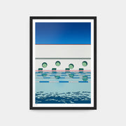 Ana Popescu's art print collection features her distinctive style, characterised by bold shapes, vibrant colours, and dynamic compositions inspired by sports, architecture, and nature. This art print, inspired by Vienna's iconic open-air pool, Wiener Stadionbad, is a must-have for design lovers and swimming fans alike.